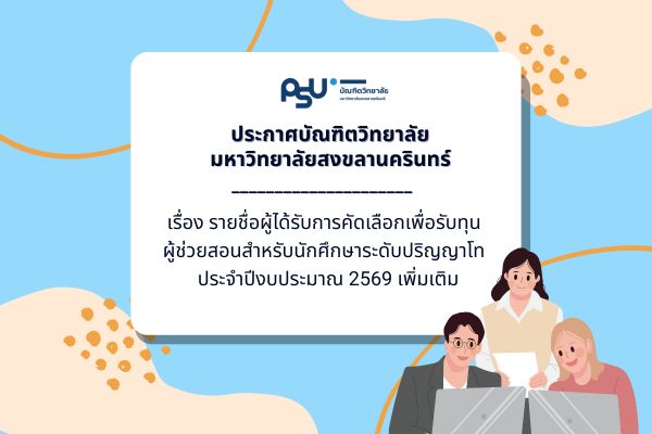 ประกาศรายชื่อผู้ได้รับการคัดเลือกเพื่อรับทุนผู้ช่วยสอนสำหรับนักศึกษาระดับปริญญาโท ประจำปีงบประมาณ 2569 เพิ่มเติม