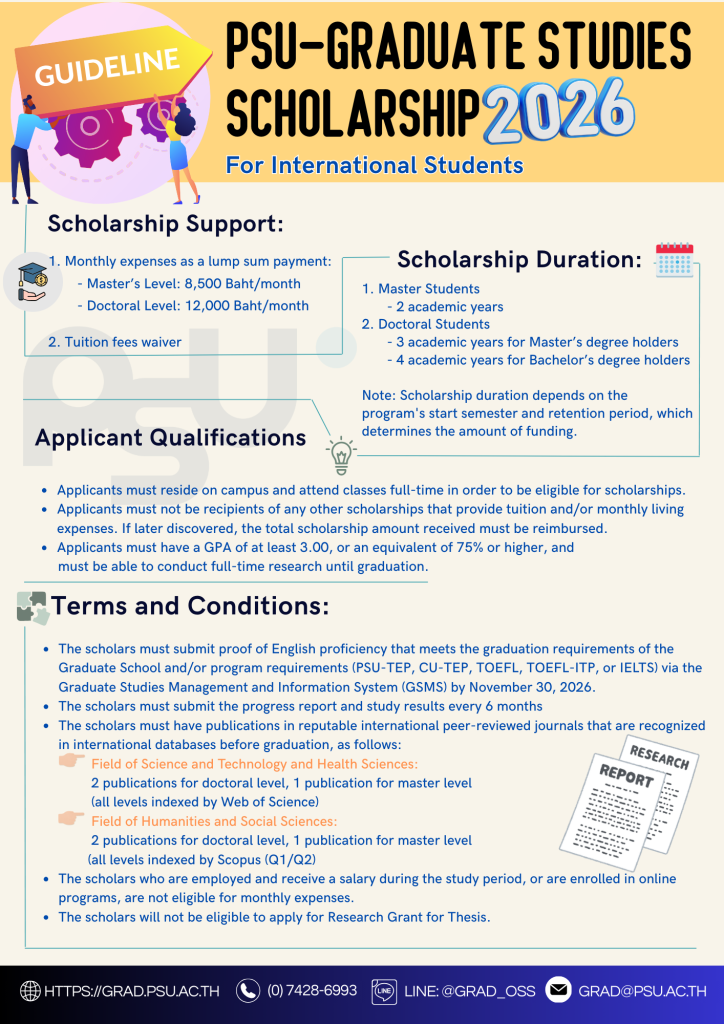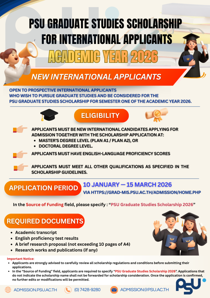 Application for the PSU-Graduate Studies Scholarships in Semester 1, Academic Year 2026 under the PSU Graduate Studies Scholarships and Admission Program